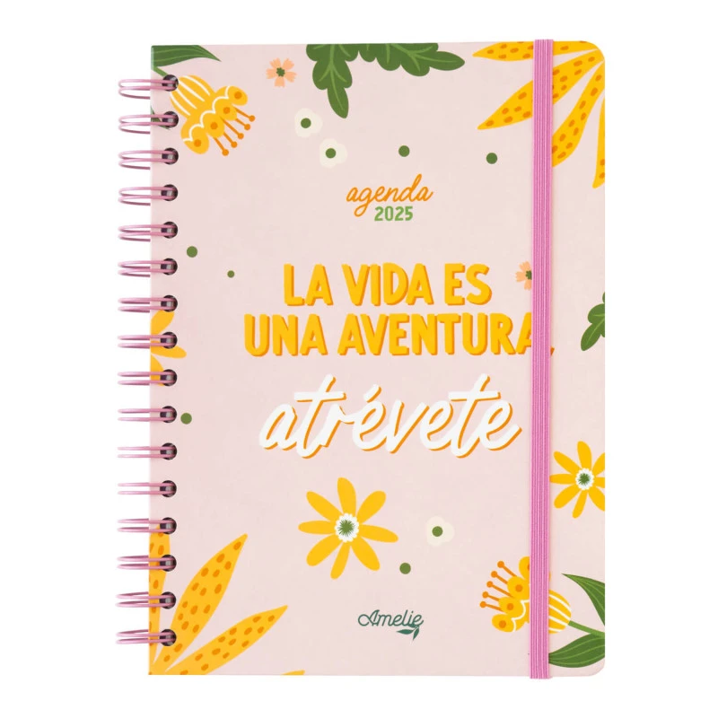 La agenda anual 2025 de Amelie tiene una duración total de 12 meses que abarcan desde Enero hasta Diciembre de 2025. Tiene formato semana vista y tamaño A5, con unas medidas de 14,8 cm de ancho por 21 cm de alto.