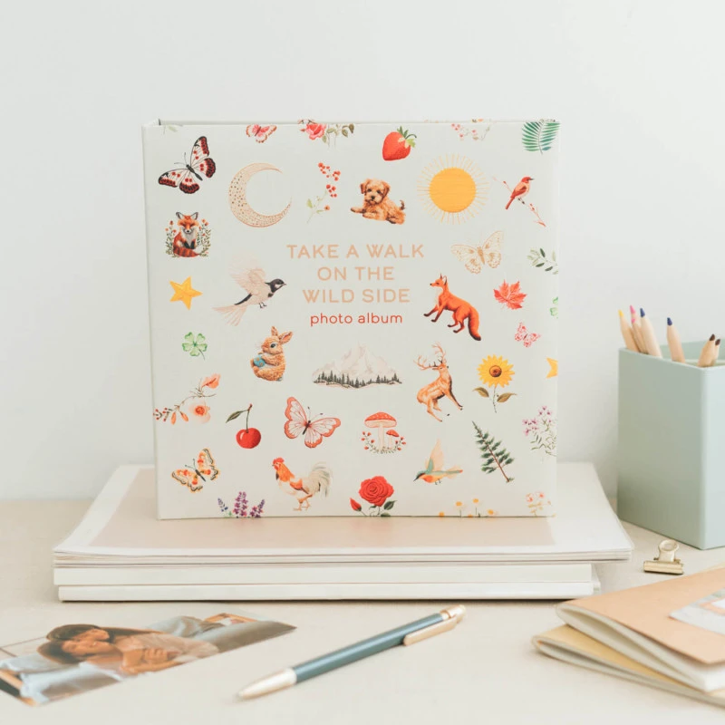 El álbum de fotos Wild Side es ideal para almacenar tus fotos y guardar tus mejores recuerdos. Tiene capacidad para 200 fotografías e incluye espacio para notas. Cuenta con un total de 100 páginas (dos fotografías por página) y tiene un tamaño de 10 x 15 centímetros.