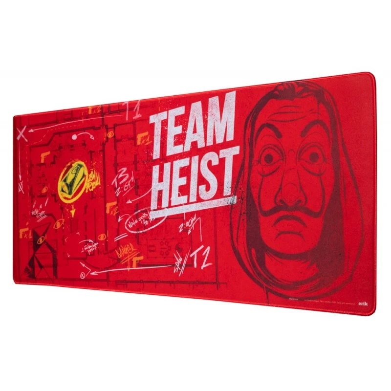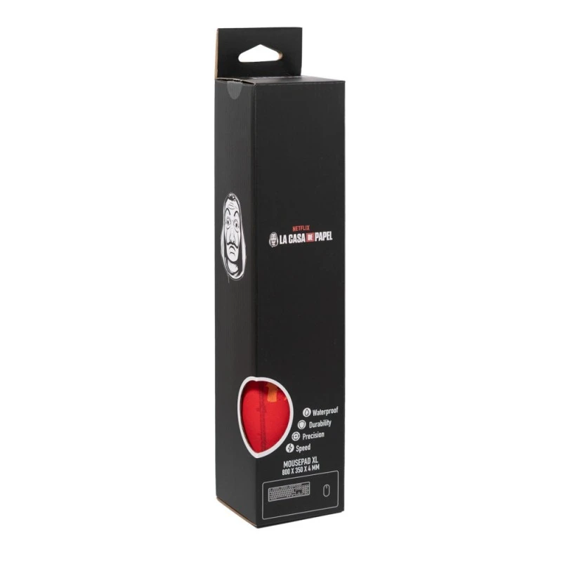 Este mousepad inspirado en la serie La Casa de Papel es el complemento ideal para darle a tu escritorio o setup un toque único y original. Su tamaño XL de 80 centímetros de ancho por 35 de alto te aporta un espacio amplio que permite la colocación tanto del teclado como del ratón.