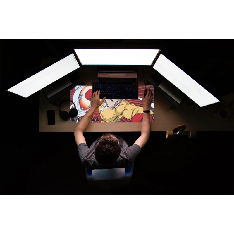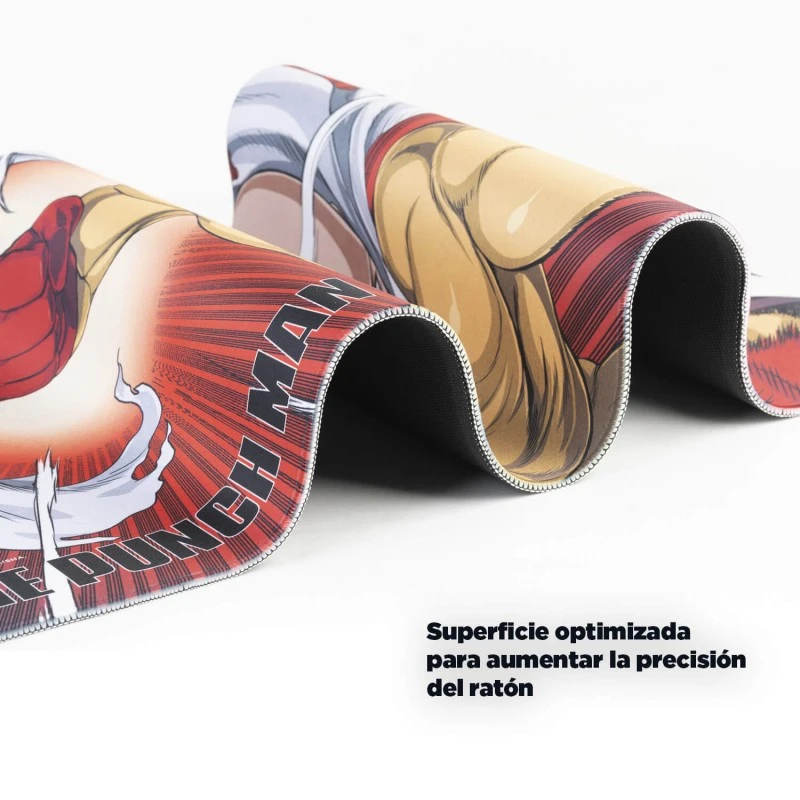 Este mousepad de la serie de manga y anime One Punch Man es el complemento ideal para darle a tu escritorio un toque original. Su tamaño XL de 80 centímetros de ancho por 35 de alto le aporta un espacio amplio que permite la colocación tanto del teclado como del ratón.