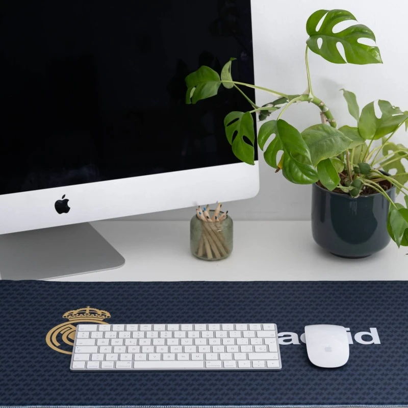 Este mousepad del Real Madrid es el complemento ideal para darle a tu escritorio o tu setup gaming un toque único y original con la seña de identidad de tu equipo de fútbol favorito. Su tamaño XL de 80 centímetros de ancho por 35 de alto te aporta un espacio amplio que permite la colocación tanto del teclado como del ratón.
