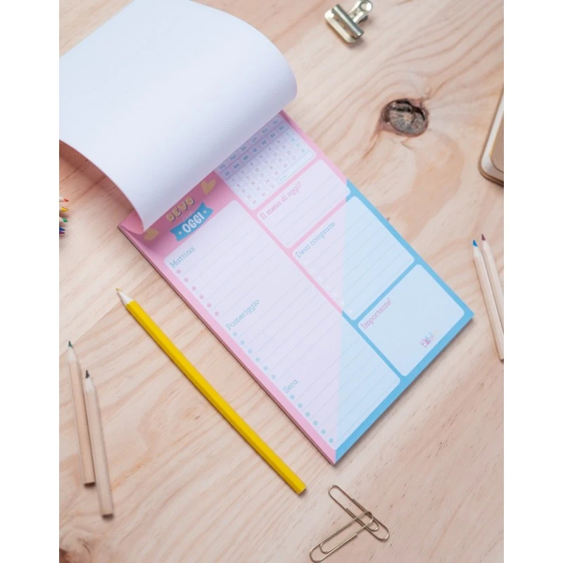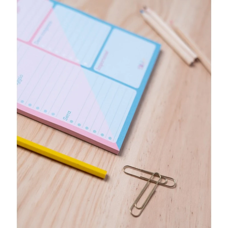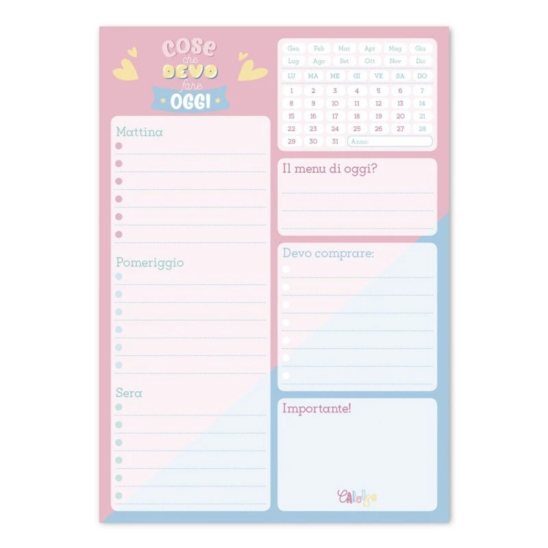 Bloc Notas de Escritorio Carouge Blue & Pink Ita si buscabas una forma de llevar al día tus notas ya la encontraste. Este bloc tiene un diseño para que no dejes escapar nada como lista de la compra, notas para el día a día, un pequeño calendario en la parte superior. Esta compuesto por 54 páginas impresas a todo color a una sola cara en papel de 90 gr. Tiene una medida A5. Esta editado en italiano.