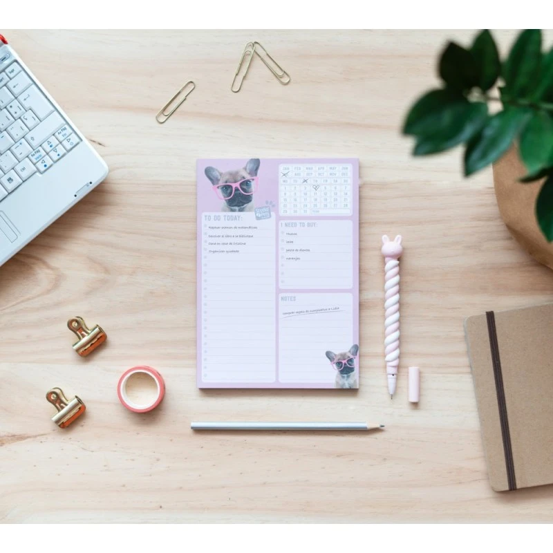 Bloc Notas de Escritorio Studio Pets Dogs 2019 si buscabas una forma de llevar al día tus notas ya la encontraste. Este bloc tiene un diseño para que no dejes escapar nada como lista de la compra, notas para el día a día, un pequeño calendario en la parte superior. Esta compuesto por 54 páginas impresas a todo color a una sola cara en papel de 90 gr. Tiene una medida A5. Esta editado en italiano.