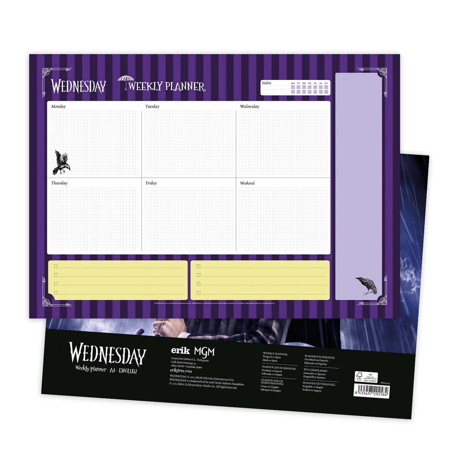 Este bloc planificador semanal contiene 54 hojas de tamaño A3 (42 x 29,7 cm) impresas a todo color en papel de 90 gramos. Cuenta con múltiples espacios para la planificación de cada día de la semana y para realizar anotaciones. Incluye un recuadro para el mes o la fecha.