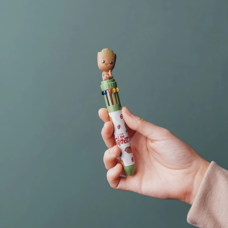 Este bolígrafo de Groot se compone de 10 colores diferentes y está inspirado en la serie de Marvel Yo Soy Groot. Ha sido fabricado en PVC y cuenta con un topper en 3D del personaje en la parte superior del mismo.