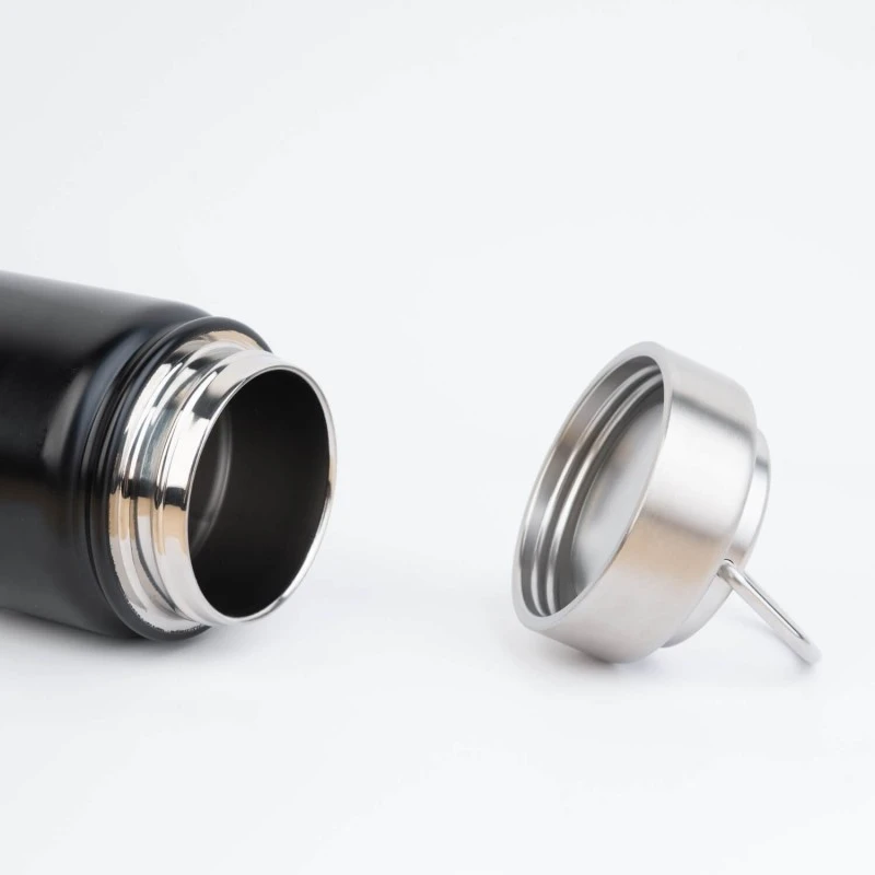 Cuenta con pared de doble capa, lo cual te permite mantener tu bebida caliente hasta 12 horas y fría durante 24 horas. También tiene tapón hermético para un cierre de mayor seguridad y anilla para transportarla con comodidad.