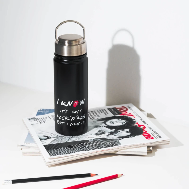 Esta botella metálica de The Rolling Stones es el complemento ideal para disfrutar de tu bebida favorita en cualquier lugar. Tiene capacidad para 550 mililitros y mide 21 cm de alto y 7,3 cm de diámetro.