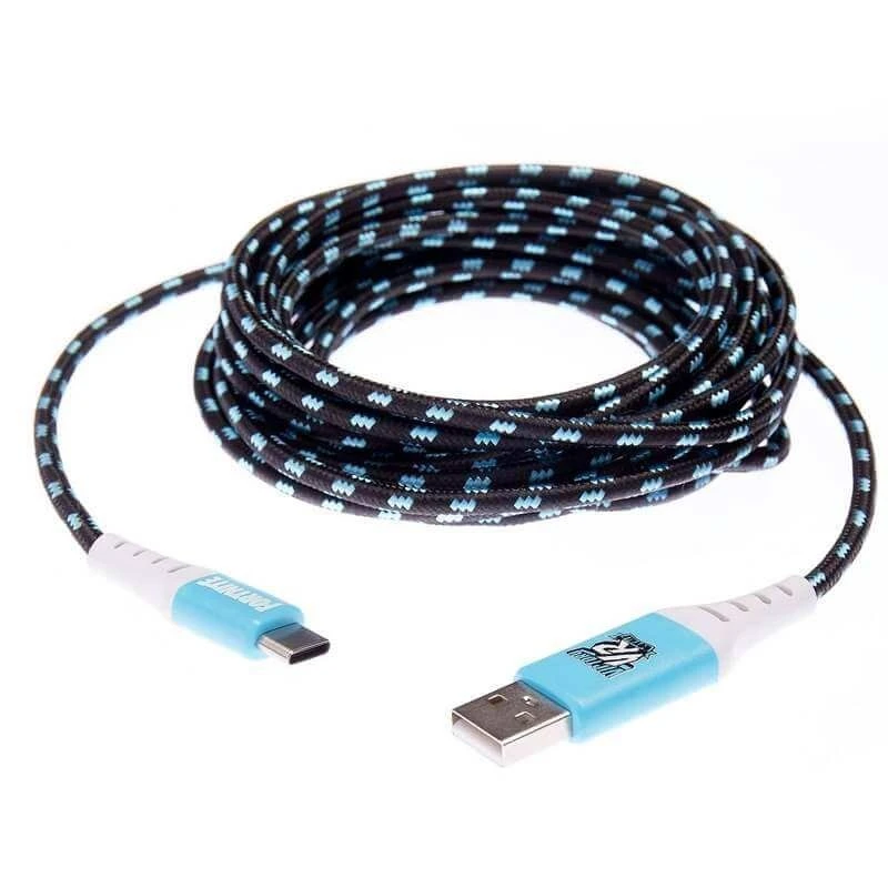 Mantén tu mando siempre cargado y listo para jugar a Fortnite, gracias a este cable de carga USB con el logotipo de Fortnite en un extremo y el logotipo de Victory Royale en el otro.