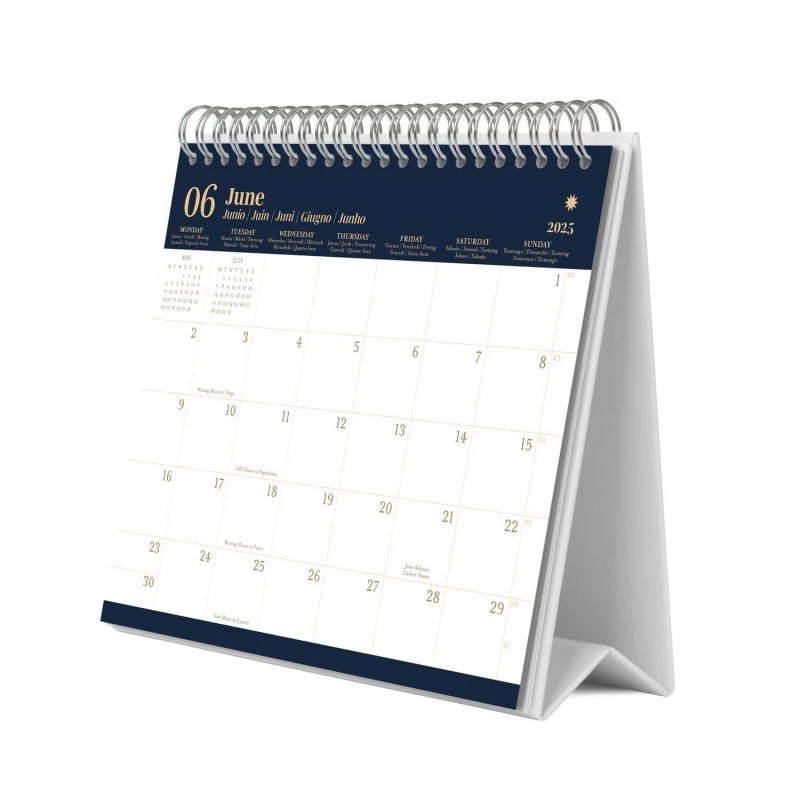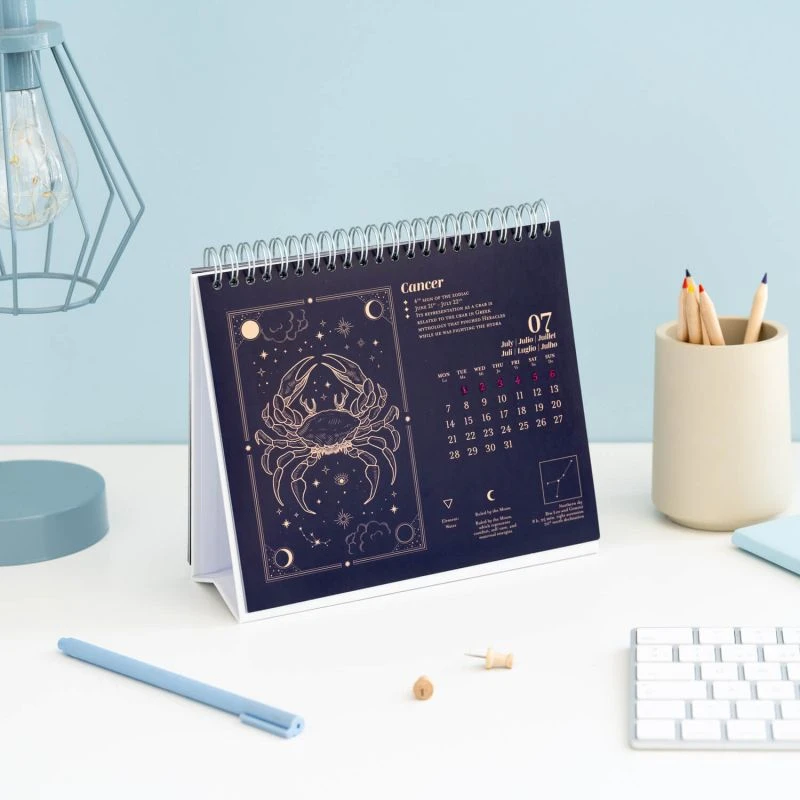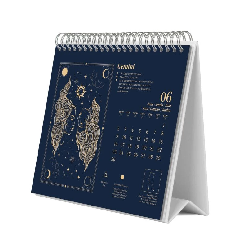 El calendario de escritorio Astral tiene una duración total de 12 meses que abarcan desde Enero hasta Diciembre de 2025. Incluye diferentes imágenes para cada mes del año y cuenta con dos formatos diferentes de calendario mensual, uno de ellos con espacio diario para anotaciones. Idiomas: inglés, español, francés, alemán, italiano y portugués.