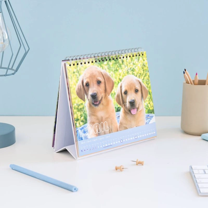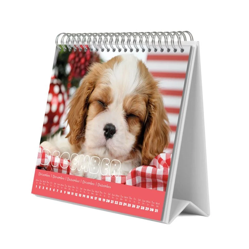 El calendario de escritorio Dogs & Puppies tiene una duración total de 12 meses que abarcan desde Enero hasta Diciembre de 2025. Incluye diferentes imágenes para cada mes del año y cuenta con dos formatos diferentes de calendario mensual, uno de ellos con espacio diario para anotaciones. Idiomas: inglés, español, francés, alemán, italiano y portugués.