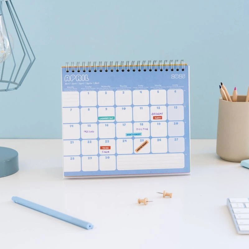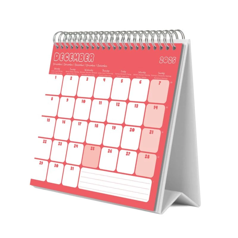 - Calendario de escritorio de 12 meses de Enero a Diciembre 2025.