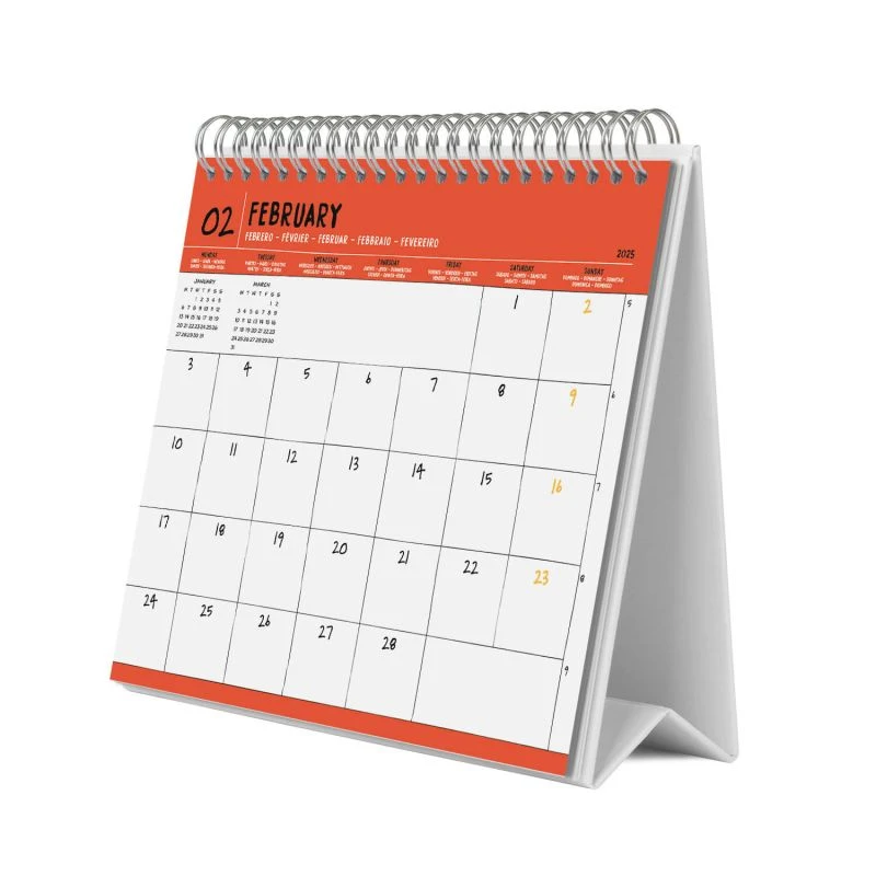- Calendario de escritorio de 12 meses de Enero a Diciembre 2025.