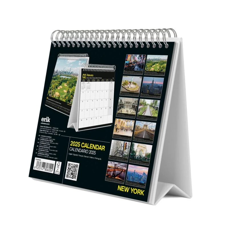 Este calendario de escritorio de Nueva York tiene una duración total de 12 meses que abarcan desde Enero hasta Diciembre de 2025. Incluye diferentes imágenes para cada mes del año y cuenta con dos formatos diferentes de calendario mensual, uno de ellos con espacio diario para anotaciones. Idiomas: inglés, español, francés, alemán, italiano y portugués.