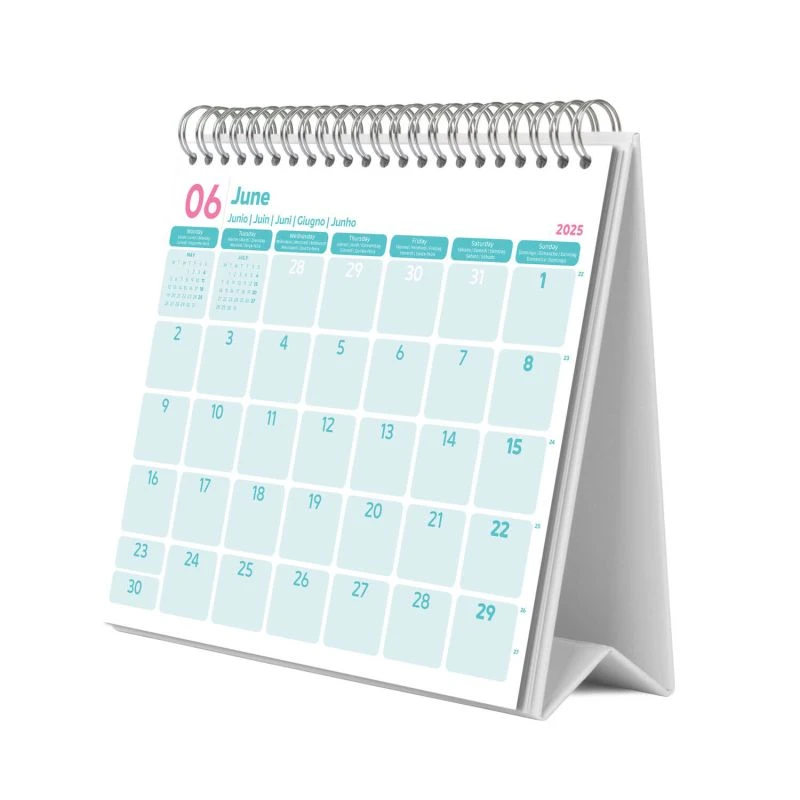 - Calendario de escritorio de 12 meses de Enero a Diciembre 2025.