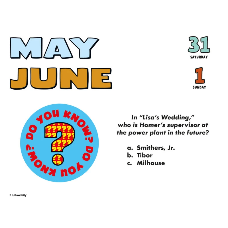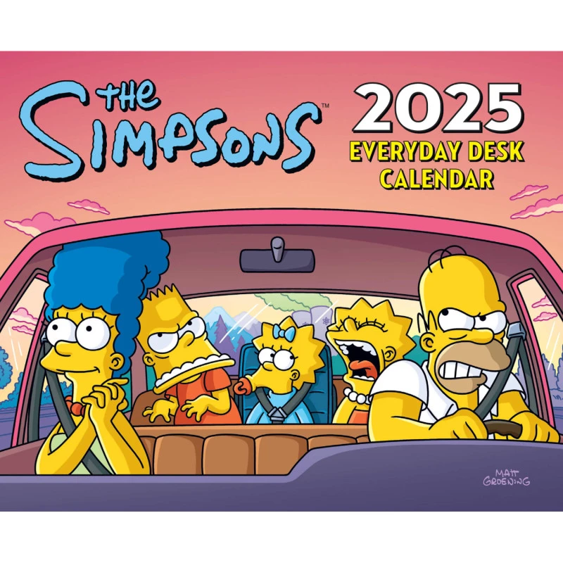 Este calendario de escritorio de Los Simpsons tiene una duración total de 12 meses que abarcan desde Enero hasta Diciembre de 2025. Cuenta con una página desprendible para cada día del año que incluye diferentes imágenes, curiosidades y adivinanzas. Se coloca en posición horizontal y la cubierta superior se dobla haciendo de soporte. Los textos están en inglés.