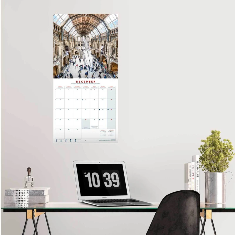 Este calendario de pared de Londres tiene una duración total de 16 meses que abarcan desde Septiembre de 2024 hasta Diciembre de 2025. Contiene 12 imágenes de diferentes lugares de Londres en su interior. Respecto a su tamaño, mide 30 centimetros de ancho por 60 de alto (abierto). Idiomas: inglés, español, francés, alemán, italiano y portugués.