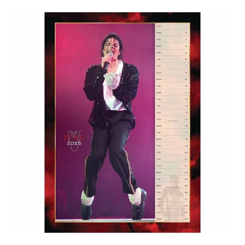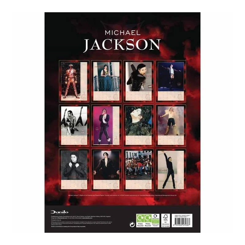 Este calendario de pared de Michael Jackson tiene una duración total de 12 meses que abarcan desde Enero hasta Diciembre de 2025. Incluye 12 imágenes diferentes en su interior. Tiene tamaño A3 con unas medidas de 29,7 centimetros de ancho por 42 de alto. Los textos están en inglés.