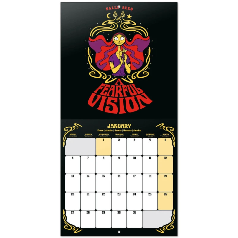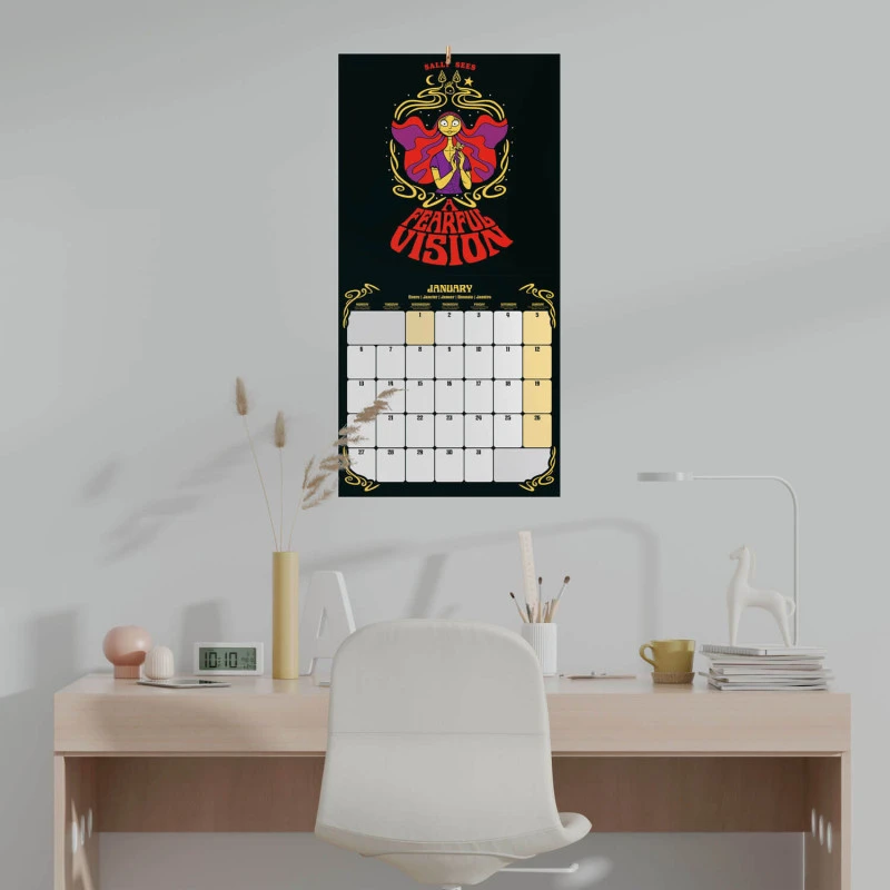 Este calendario de pared de Pesadilla Antes de Navidad tiene una duración total de 12 meses que abarcan desde Enero hasta Diciembre de 2025. Contiene 12 ilustraciones y un póster en su interior. Respecto a su tamaño, mide 30 centimetros de ancho por 60 de alto (abierto). Idiomas: inglés, español, francés, alemán, italiano y portugués.