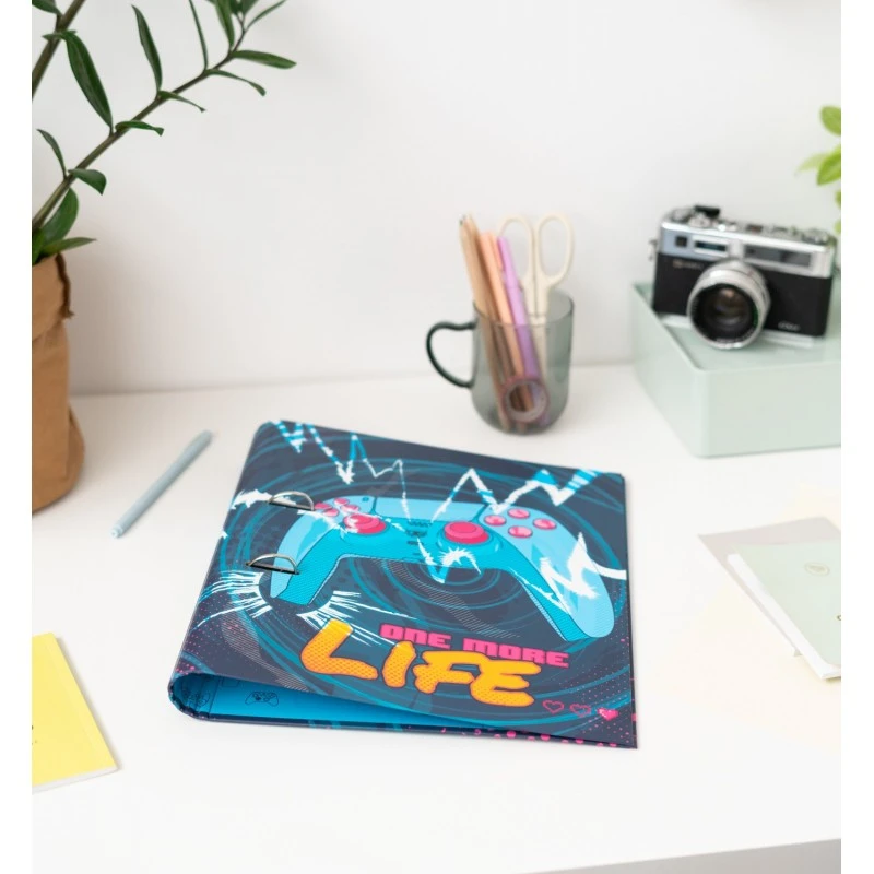 ¿Necesitas una carpeta para tener todo bien organizado? Aquí tienes una estupenda carpeta de anillas con el nuevo diseño de Gamer One More Life.
