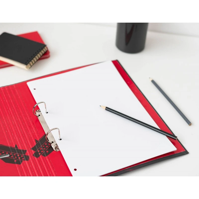 Encuadernación de 2 anillas y cierre de banda elástica de 9 mm. Pensada para almacenar, principalmente, hojas tamaño A4.