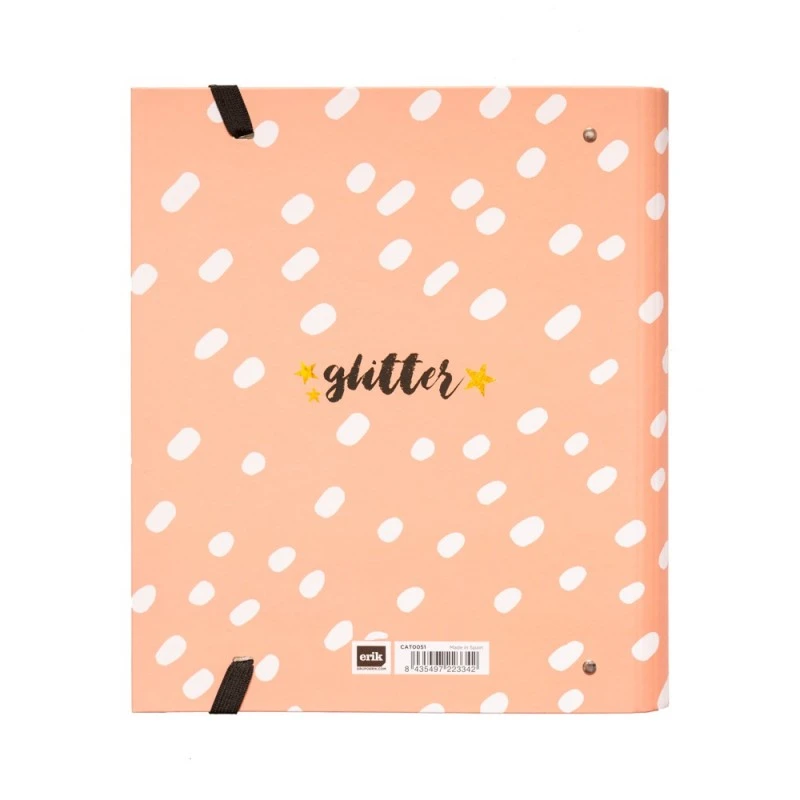 Carpeta Premium Glitter Gold Dreams es la mejor forma de organizar cualquier documento. Está fabricada con materiales de alta calidad manetniendo los diseños y licencias más actuales. Tiene unas medidas de 26 x 32 cm. Tiene tapa dura de cartón de espesor de 2mm forrada en papel con acabado mate. Su encuadernación es de 4 anillas, con cierre de banda elástica y diseño ineterior personalizado.