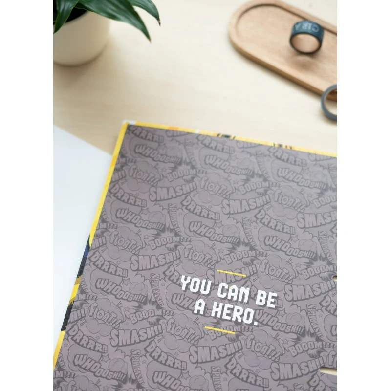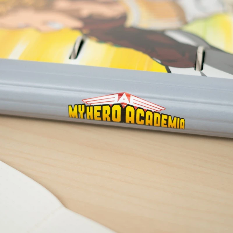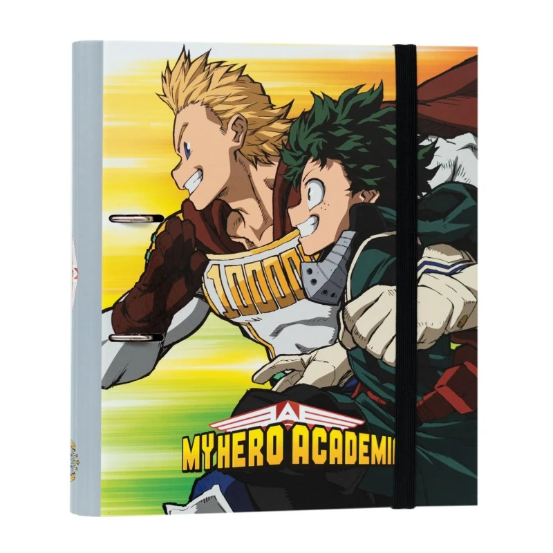 Esta carpeta escolar de My Hero Academia está elaborada en tapa dura de cartón de 2 mm de grosor forrada con papel mate de 150 g/m2. Tiene un tamaño de 32 centímetros de alto por 28 de ancho.