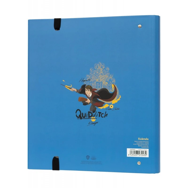 Esta carpeta escolar de Harry Potter está elaborada en tapa dura de cartón de 2 mm de grosor forrada con papel mate de 150 g/m2. Tiene un tamaño de 32 centímetros de alto por 28 de ancho.