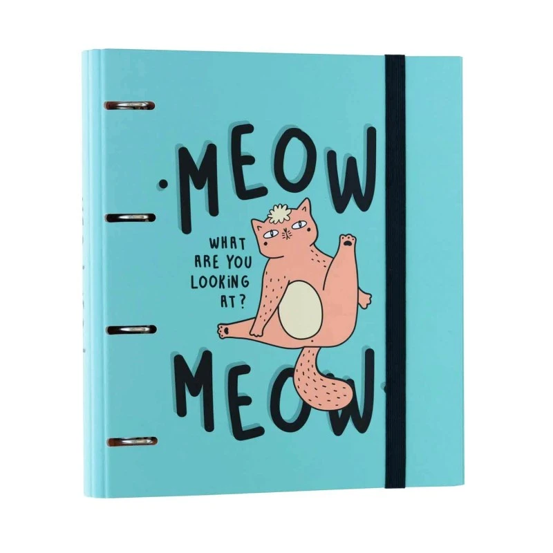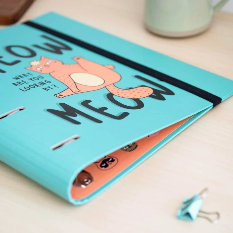 Esta carpeta escolar Meow Meow. Para los amantes de los gatos y sus enigmáticos pensamientos.