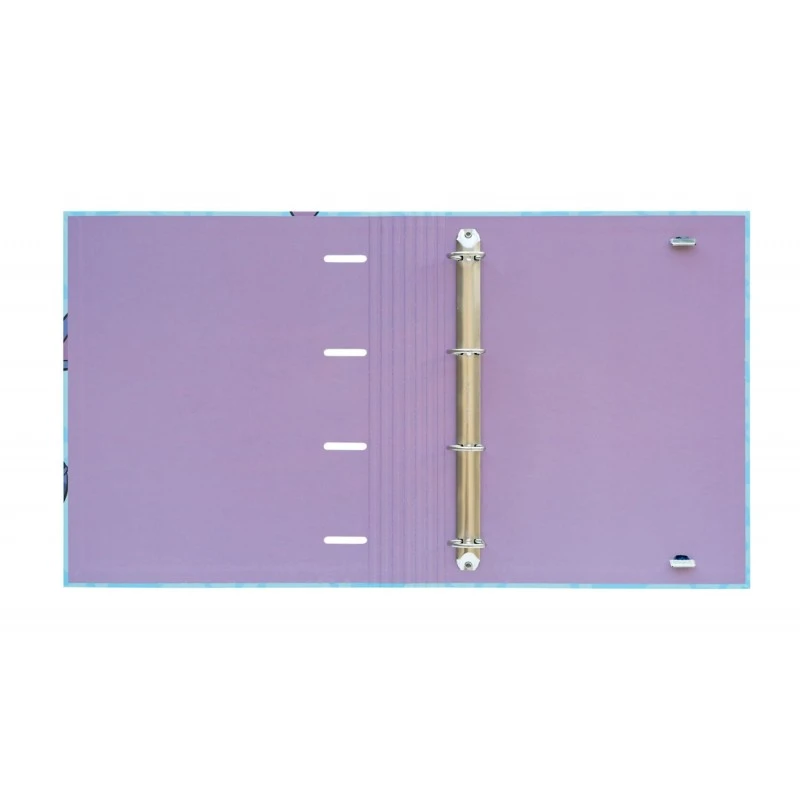 Presenta una encuadernación con 4 anillas de 35 milímetros y cierre de banda elástica de 9 milímetros. Cuenta con un diseño personalizado tanto en el exterior como en el interior.