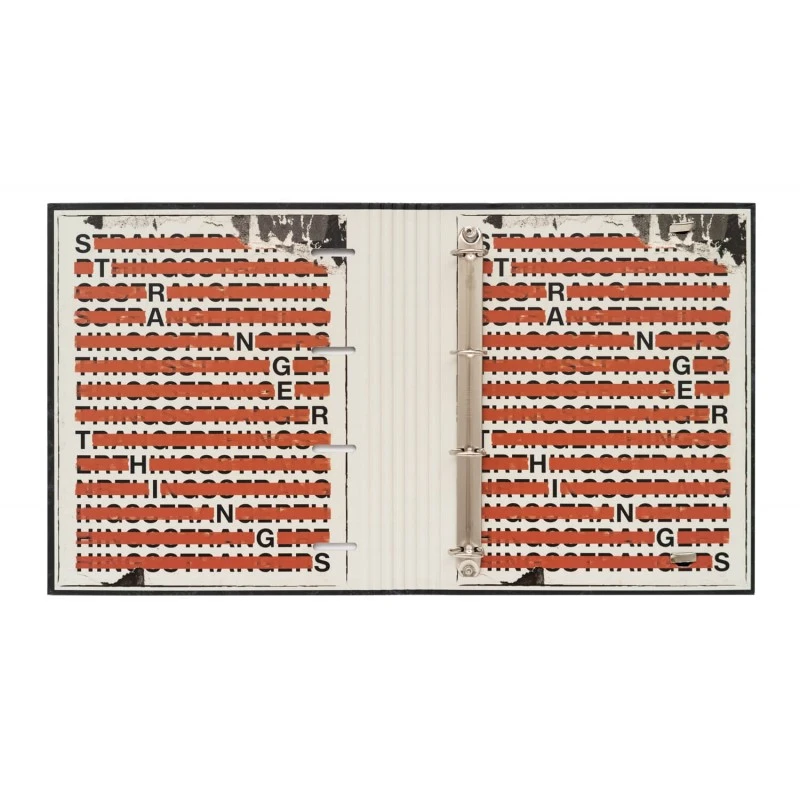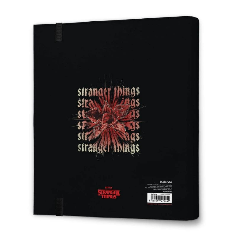 Esta carpeta escolar de Stranger Things está elaborada en tapa dura de cartón de 2 mm de grosor forrada con papel mate de 150 g/m2. Tiene un tamaño de 32 centímetros de alto por 28 de ancho.