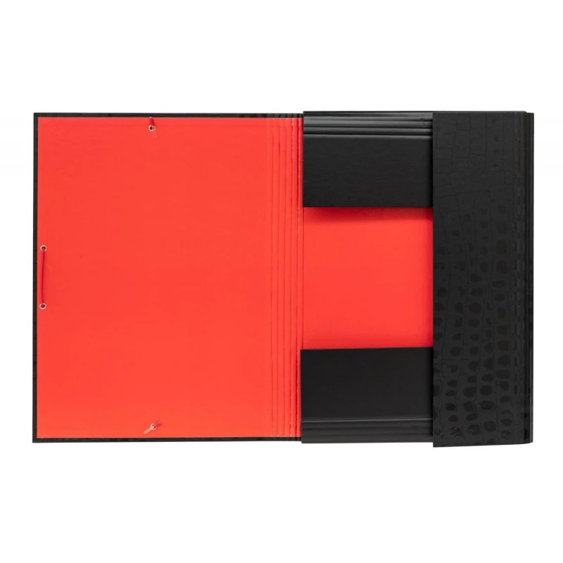 - Tres solapas flexibles y cierre de goma elástica.