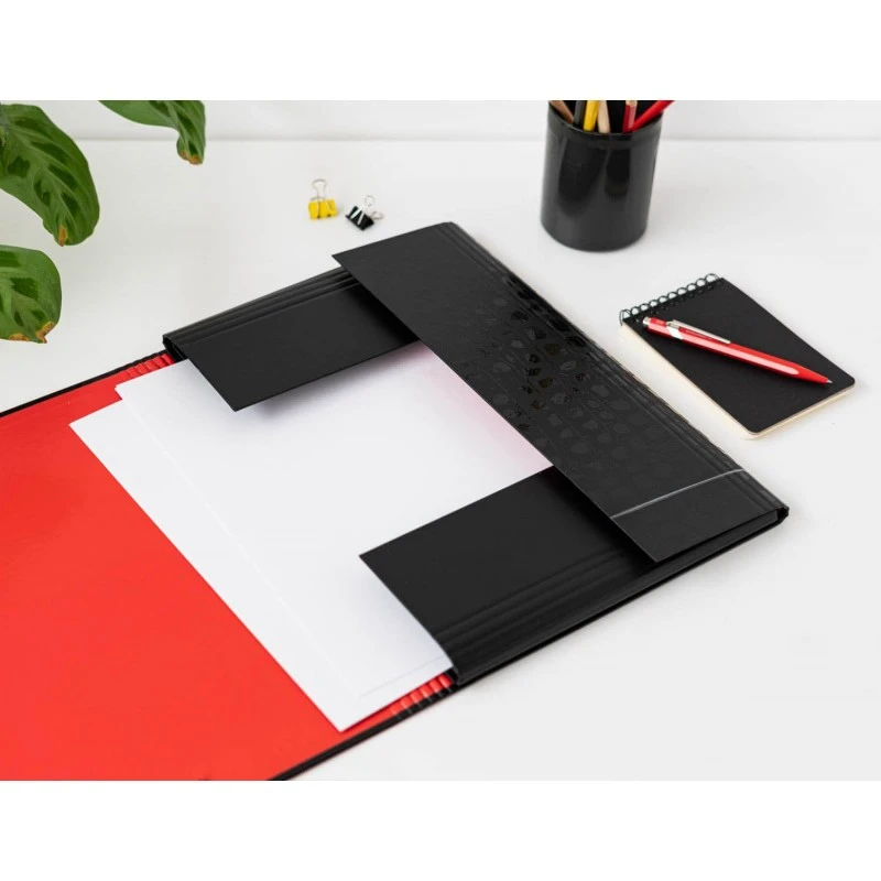 Carpeta elaborada en tapa dura de cartón de 2 mm de grosor forrada con papel mate de 150 g/m2.