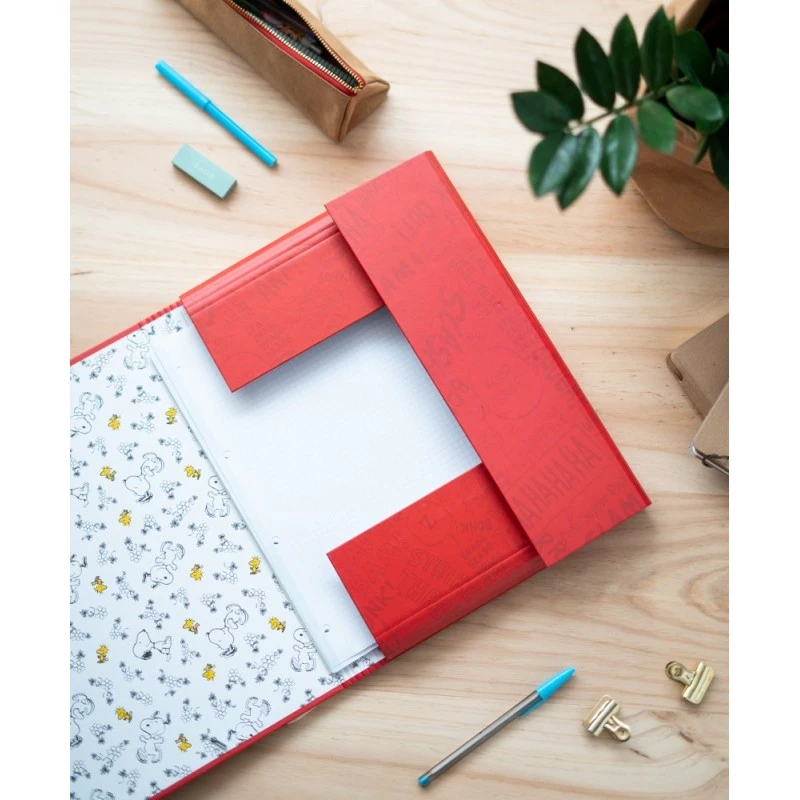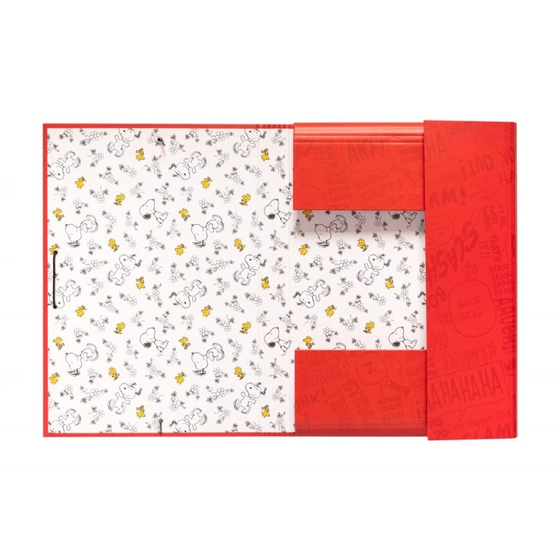 Carpeta con goma elástica con diseño de Snoopy, fabricada con los mejores materiales y magnificas ilustraciones a todo color.