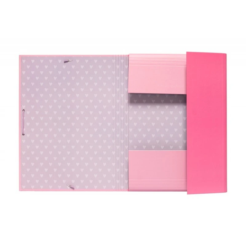 Carpeta Studio Pets Rabbits 2019 fabricada con materiales de alta calidad, manteniendo los diseños más actuales. Tiene unas medidas de 24 x 34 cm. Contiene 3 solapas flexibles, 2 de ellas de unas medidas de 13 x 23 cm y otra de 13 x 34 cm. Su tapa es de cartón duro con un espesor de 2 mm forrada en papel con acabado en mate. Su interior tambien esta personalizado.
