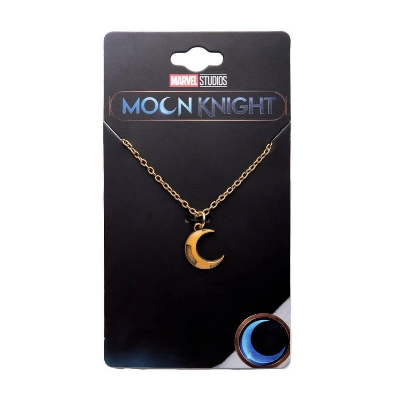 Este colgante está inspirado en la serie Moon Knight y es una réplica de la luna creciente que Caballero Luna usa como arma arrojadiza. Está fabricado de acero inoxidable y cuenta con un diseño único de gran calidad.