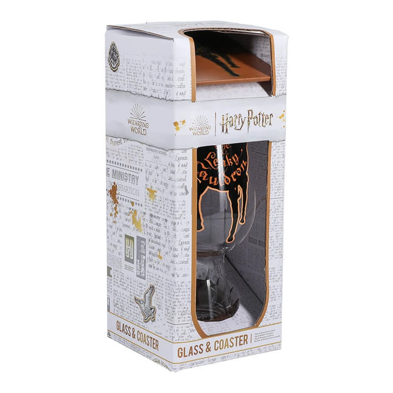 Esta copa de Harry Potter presenta un diseño con el logotipo de El Caldero Chorreante, el pub mágico situado a la entrada del Callejón Diagon, donde múltiples magos y brujas asisten a menudo para disfrutar de una buena cerveza de mantequilla.