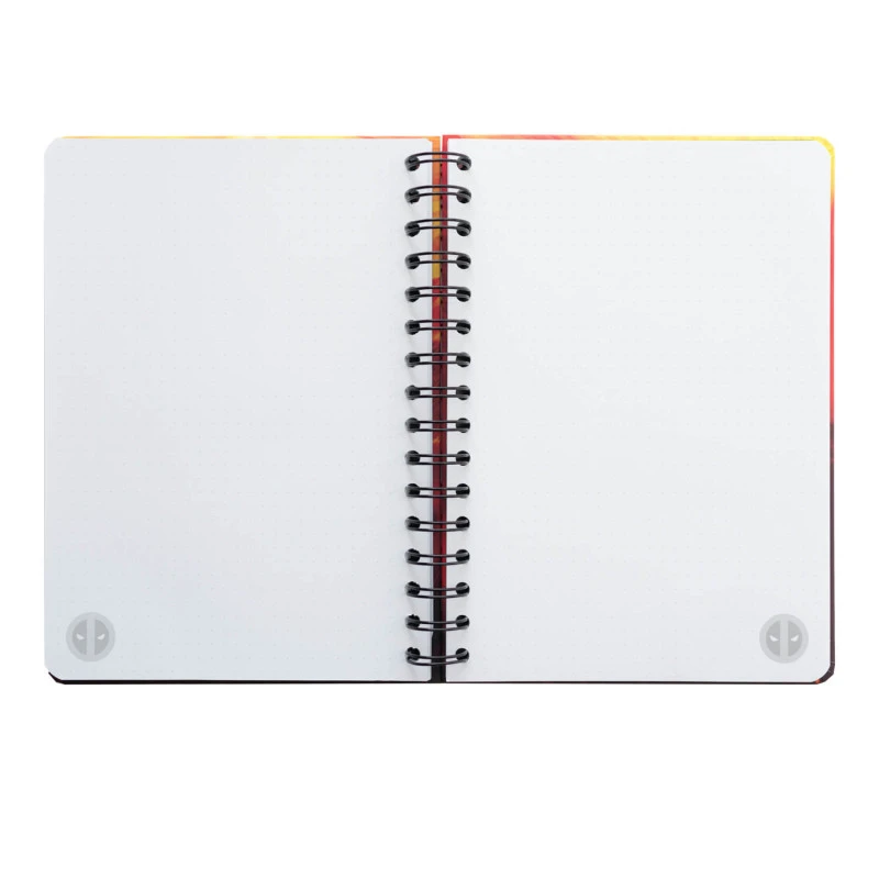 Este cuaderno inspirado en la película Deadpool y Lobezno es un complemento ideal para realizar anotaciones. Contiene 90 hojas (180 páginas) tipo bullet de tamaño A5 con un grosor de 100 g/m2.