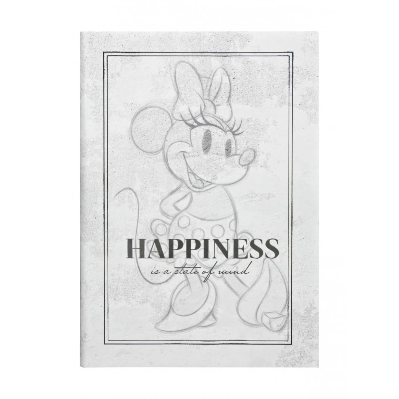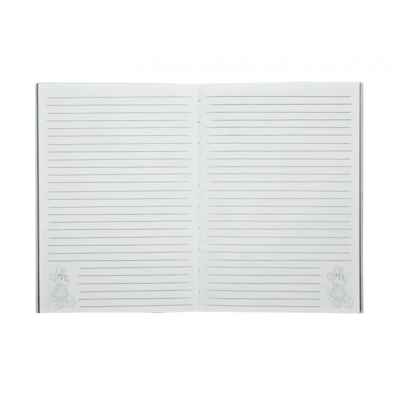 Este cuaderno de Minnie Mouse pertenece a la colección Disney 100 Aniversario y se compone de 80 hojas de tamaño A5 fabricadas en papel FSC de 80 g/m² con plata/oro rosa en el lateral.