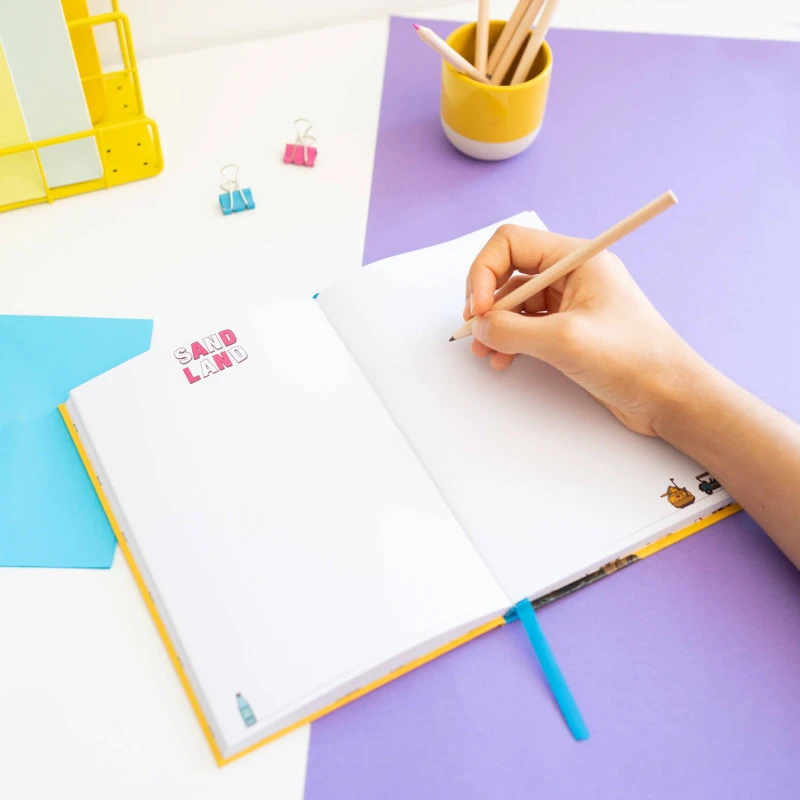 Este cuaderno de la serie de manga y anime Sand Land es un complemento ideal para realizar anotaciones o utilizar como diario. Contiene 96 hojas (192 páginas) tipo bullet de tamaño A5 con un grosor de 100 g/m2.
