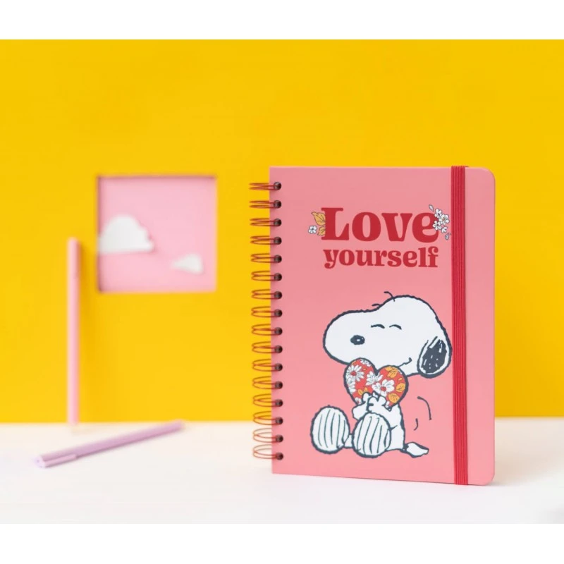 - Anota tus ideas en este cuaderno de Snoopy, con la frase ‘Love Yourself’.