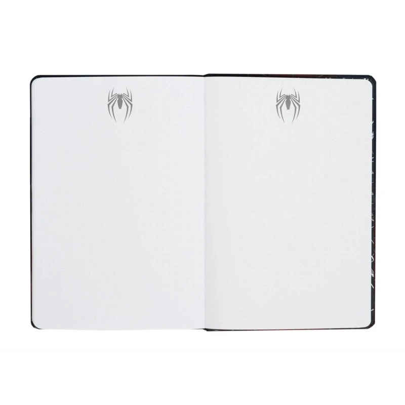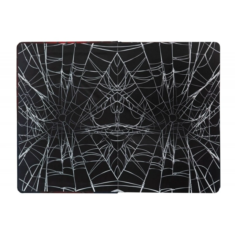 Este cuaderno del popular personaje de Marvel, Spider-Man, cuenta con un diseño personalizado tanto en la parte exterior como en su interior. La cubierta está inspirada en el traje del hombre araña, mientras que la parte interior está compuesta por un fondo negro con telarañas blancas.