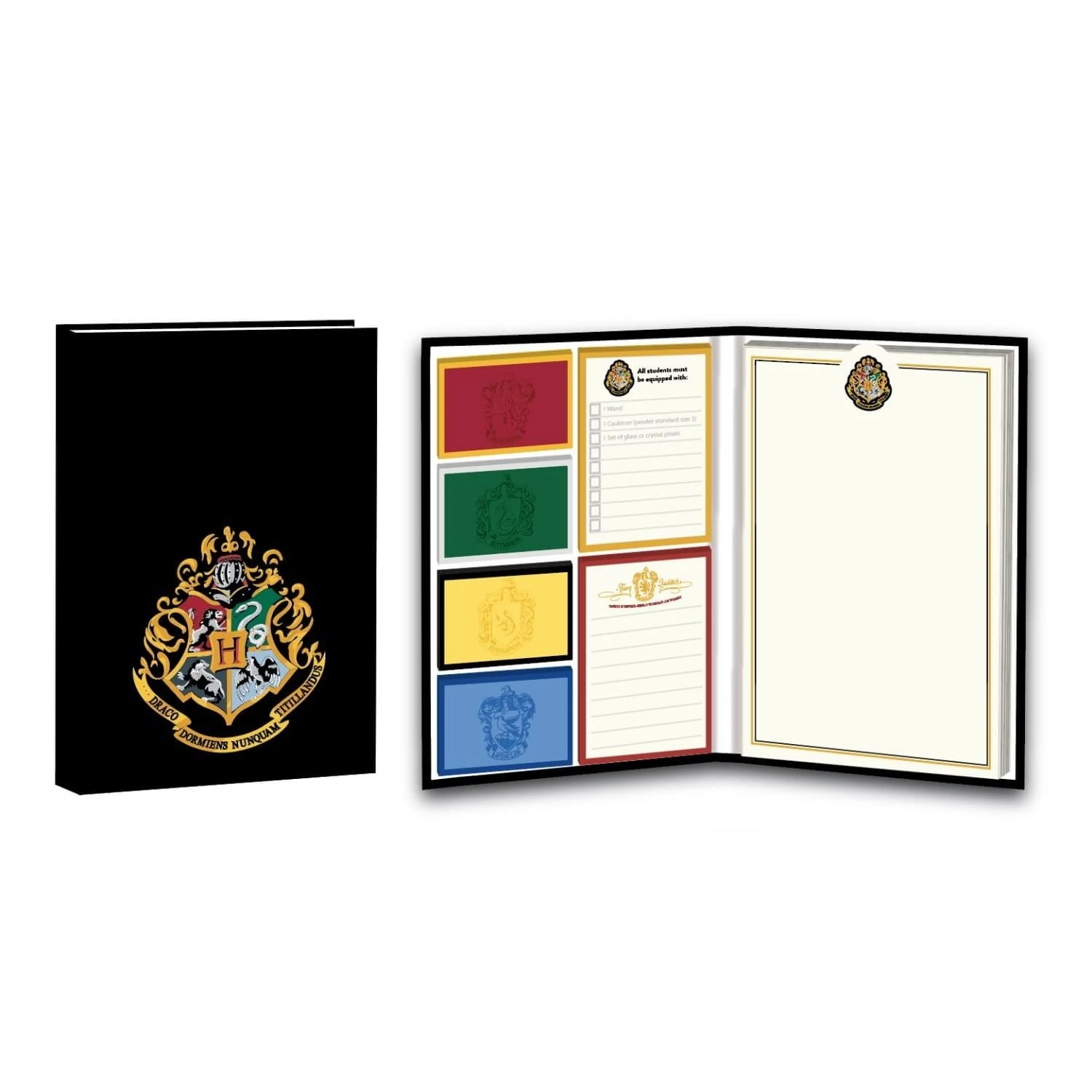 - Plasma tus ideas en este cuaderno de notas adhesivas de Harry Potter, con el escudo del colegio Hogwarts de Magia y Hechicería.