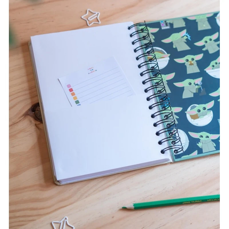 ¡Lo encontraste! Ya tienes a Baby Yoda al alcance de tu mano. ¿Se te ocurre un diseño más mono para tu cuaderno? ¡También puedes usarlo como Bullet Journal!