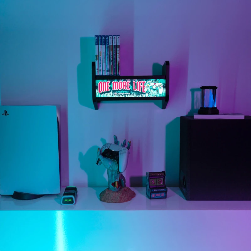 Esta estantería con lámpara arcade de la marca Gameration es el complemento ideal para colocar en tu setup gaming o tu zona de juego. Su función de estantería te permite tener bien organizados tus videojuegos, libros, películas, etc. Además, está inspirada en la parte superior de las máquinas recreativas arcade, por lo que es un elemento ideal para gamers y amantes de los videojuegos.