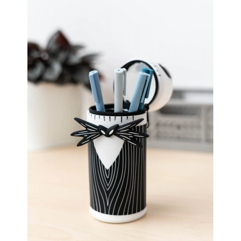 Guarda tus lápices, boligrafos y otros materiales en este fantástico estuche de Pesadilla Antes de Navidad, con diseño de Jack Skellington, el rey de Ciudad Halloween.