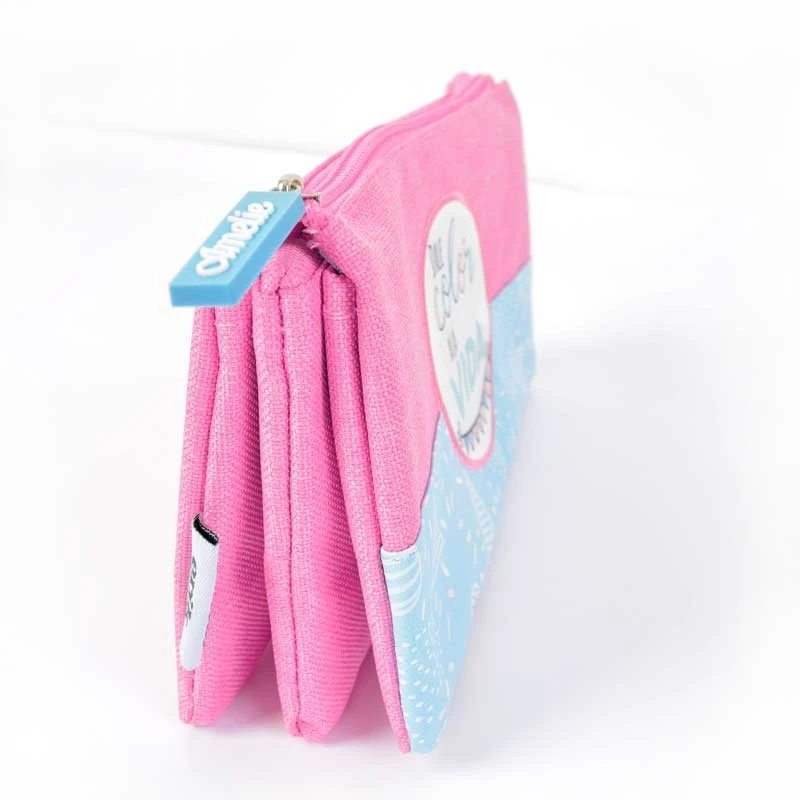 El estuche triple Amelie es el accesorio ideal para llevar a clase tus lápices, bolígrafos y todo el material escolar. Su diseño mantiene la esencia de Amelie, frases que provocan sonrisas.