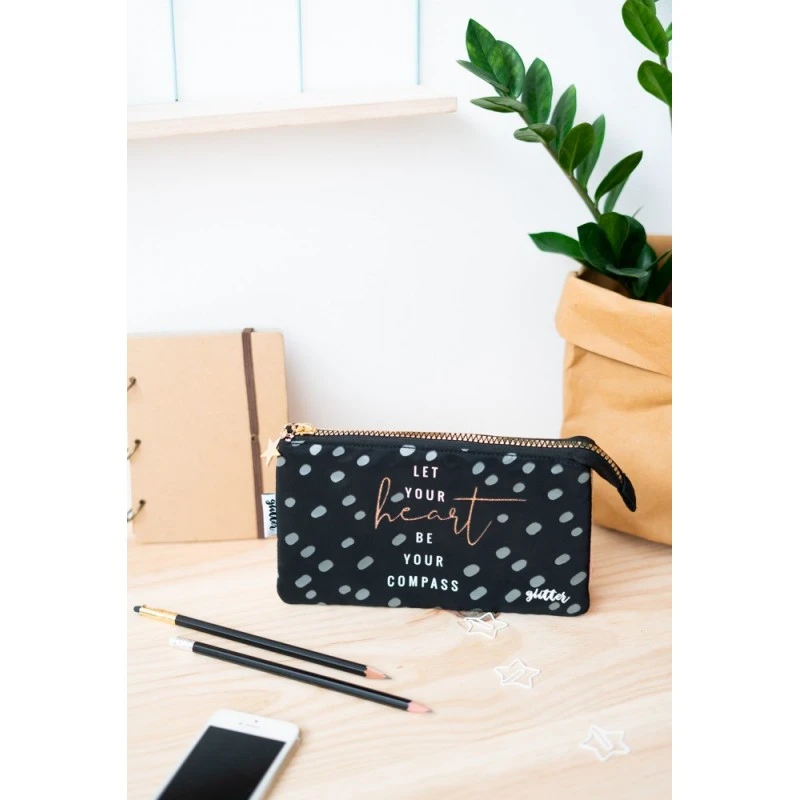 Estuche Triple Glitter es el accesorio ideal para llevar a clase tus lápices, bolígrafos y todo el material escolar. Tiene un diseño muy práctico para poder llevar todo en un solo estuche pero a la misma vez separado por sus 3 bolsillos.