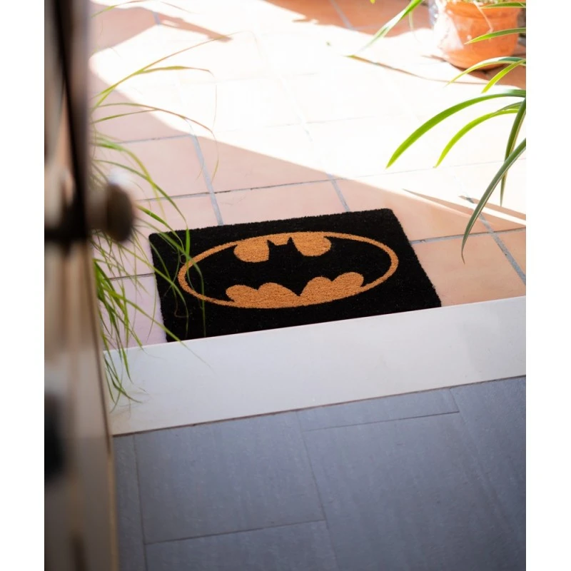 Felpudo Dc Comisc Batman Logo hazte con uno de nuestros felpudos y no te arrepentiras, contamos con una gran variedad de modelos y manteniendo unos diseños de lo más actual. Si quieres dar un buen recibimiento a tus invitados y que la primera impresión sea buena aquí tienes el felpudo que estabas buscando. Tambien puede ser una opción de regalo original y diferente. Está fabricado con materiales de alta calidad con una base de PVC antideslizante. Su medida es de 40 x 60 cm.