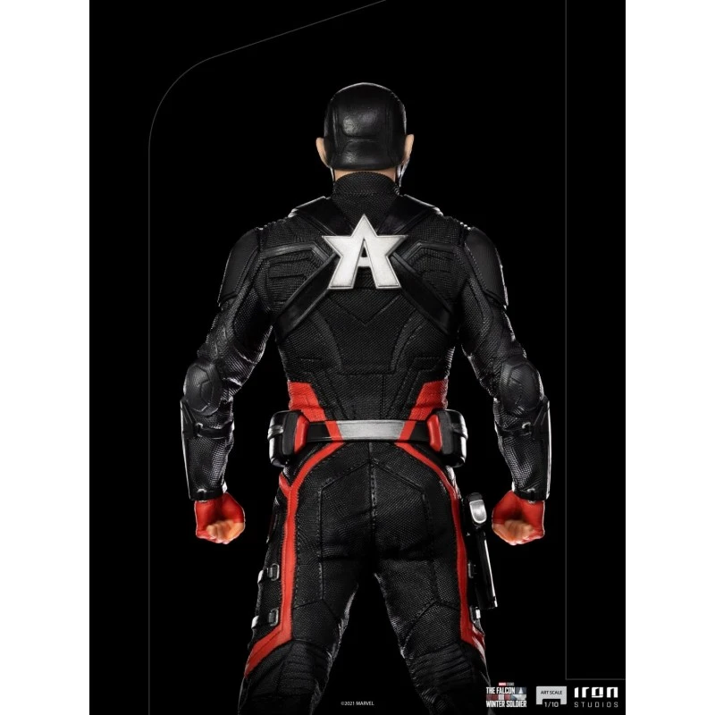 Esta figura de John Walker está inspirada en el personaje que aparece en la serie Falcon y el Soldado de Invierno, y es una edición a escala 1:10 de la colección Art Scale de Iron Studios. Mide aproximadamente 22 x 10 x 7 centímetros.