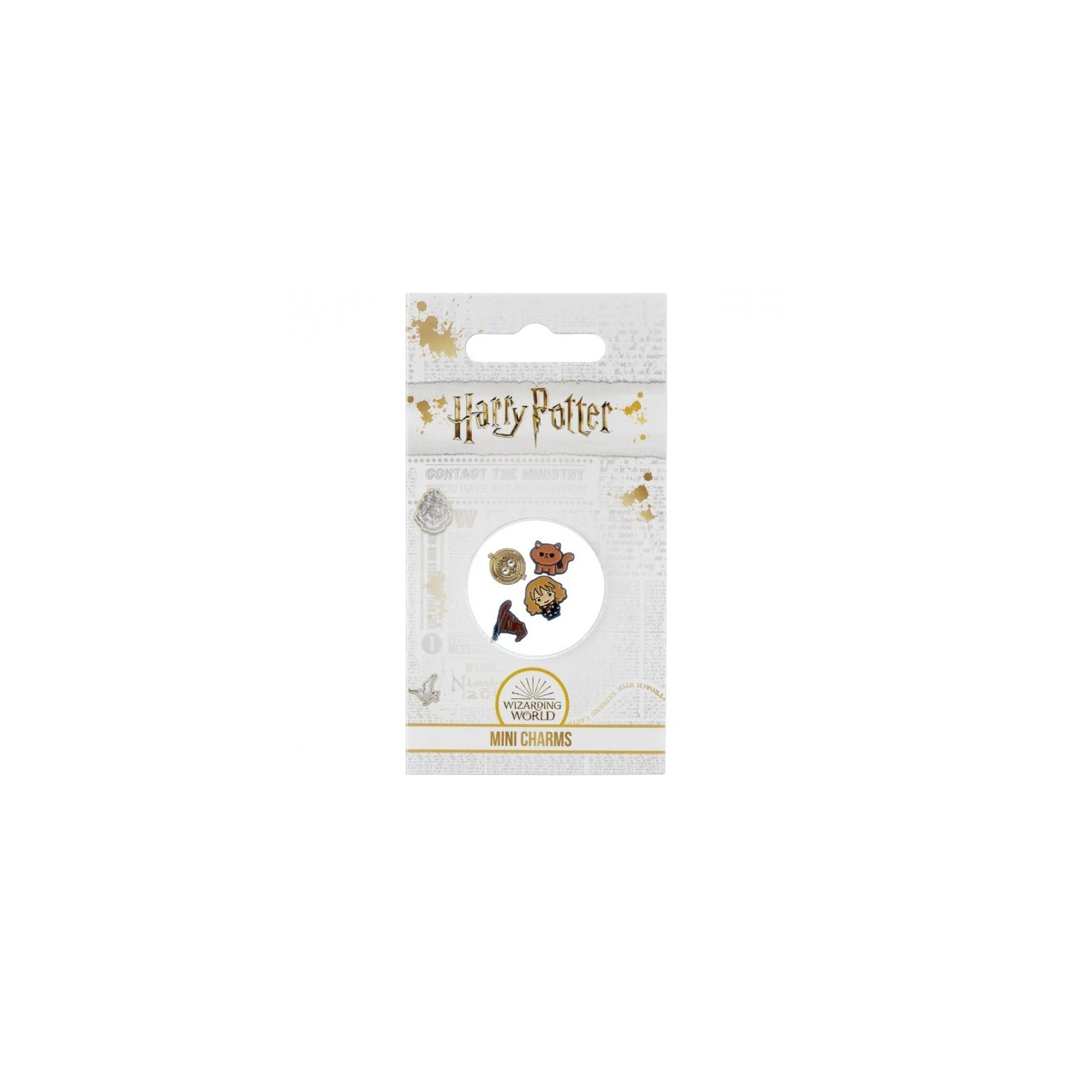 Este set de abalorios para colgante de Hermione Granger contiene 4 abalorios diferentes del personaje: Hermione chibi, su gato Crookshanks, el Giratiempo y el Sombrero seleccionador. Están fabricados en aleación de Zinc (93% Zinc + 3% Cobre + 4% Aluminio).